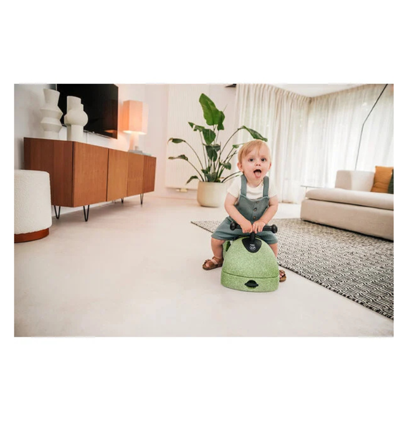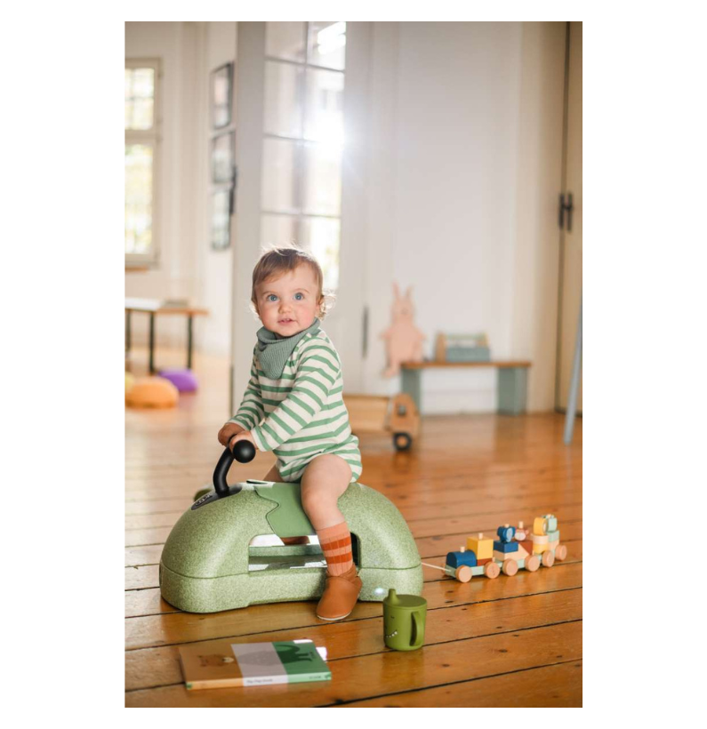 O My First Scoot&Ride Verde é o andador perfeito para os primeiros passos do bebé. Leve, seguro e feito em material EPP macio e reciclável, combina três funções num só produto: carrinho de empurrar, andador e carrinho de passeio. A transformação é imediata, sem ferramentas, permitindo horas de brincadeira enquanto o bebé puxa, empurra, trepa e explora.