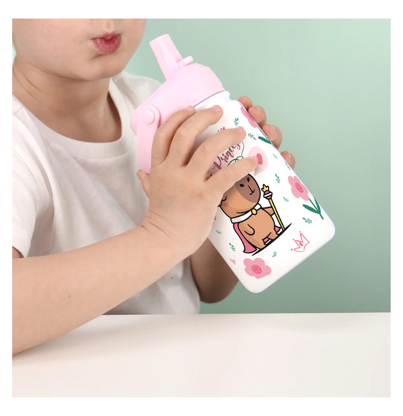 Aurea Kids Garrafa Capivara “Princess” 330ml Ice/Pink – Garrafa Térmica Infantil