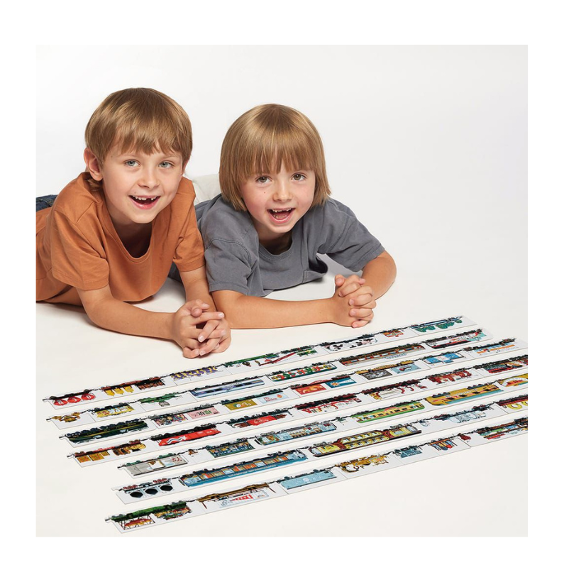 O Mix and Match Puzzle Trains é um convite irresistível para embarcar numa viagem cheia de criatividade, descoberta e diversão. Este puzzle inovador destaca-se pelas suas peças de dupla face, que podem ser combinadas livremente, permitindo às crianças criar comboios únicos e surpreendentes. Não há regras fixas — aqui, a imaginação é quem manda!