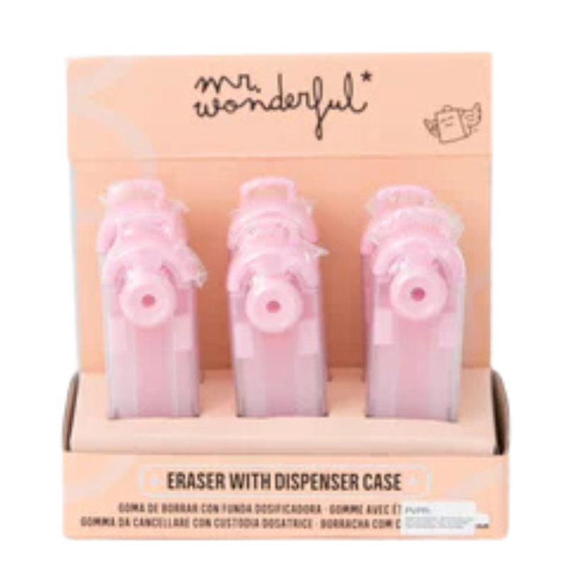 Apaga com estilo com esta borracha rosa da Mr. Wonderful! Vem numa capa com roda doseadora para usares apenas o necessário, mantendo-a sempre protegida e limpa.