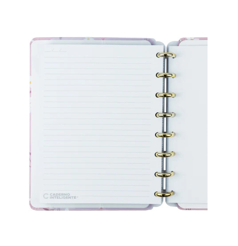 Tal como todos os produtos da linha Caderno Inteligente, o Pink Blossom vem com o sistema de discos que permite remover, reposicionar e adicionar folhas sem danificar o caderno. Isto significa que ele se adapta totalmente à tua rotina, seja para tirar apontamentos, fazer resumos, planear projetos, criar listas ou simplesmente deixar fluir ideias.