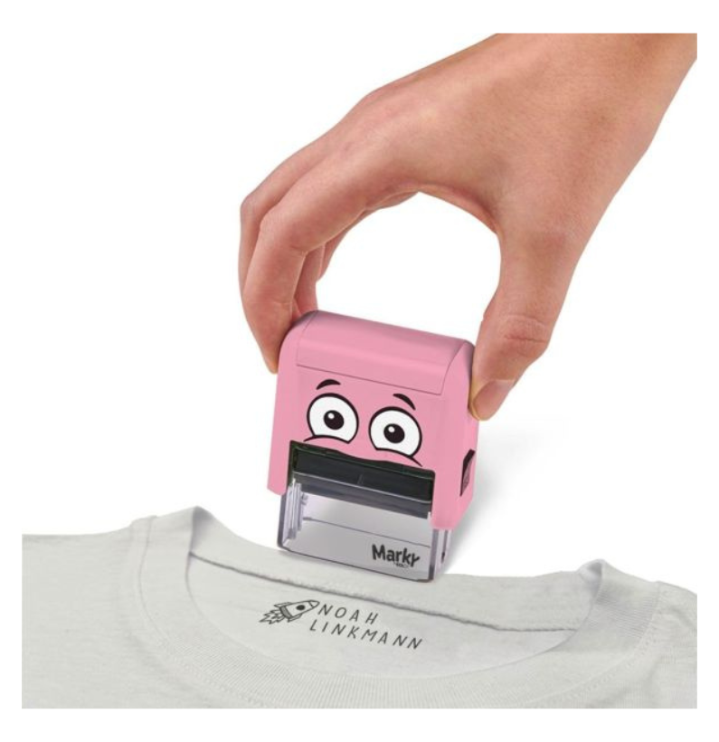 Diga adeus à perda de roupas, mochilas e materiais! O Marky é o carimbo inteligente para marcar tecidos, papel e muito mais – ideal para escola, desporto e lazer. Fabricado na Áustria, vem com letras, pictogramas, fita para tecidos escuros, etiquetas laváveis e uma tinta preta dermatologicamente testada.