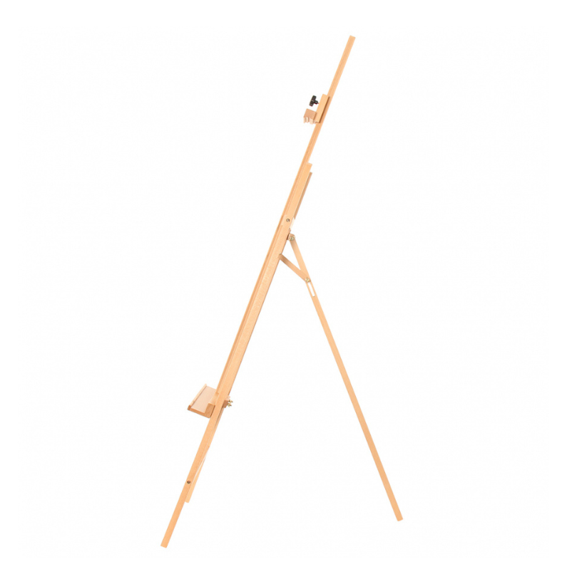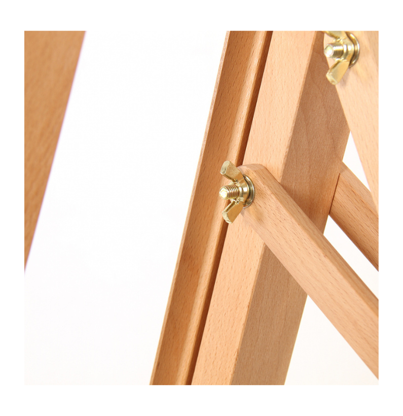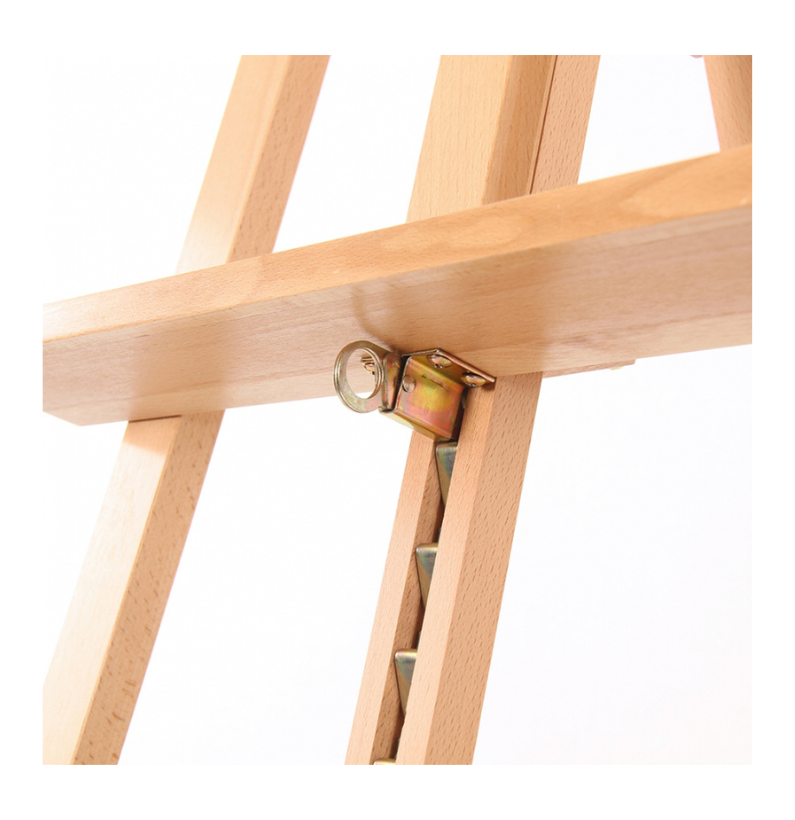 O cavalete é inclinável, possibilitando ajustar o ângulo da tela conforme a técnica utilizada — seja pintura a óleo, acrílico ou outro meio. Além disso, é ajustável em altura, adaptando-se ao utilizador e à dimensão da obra.