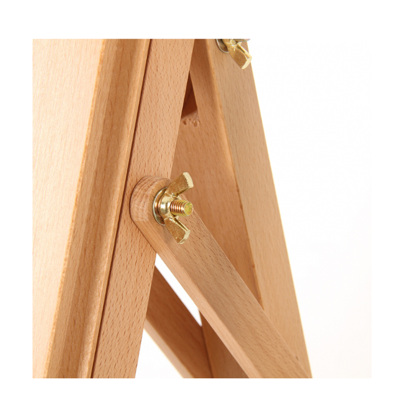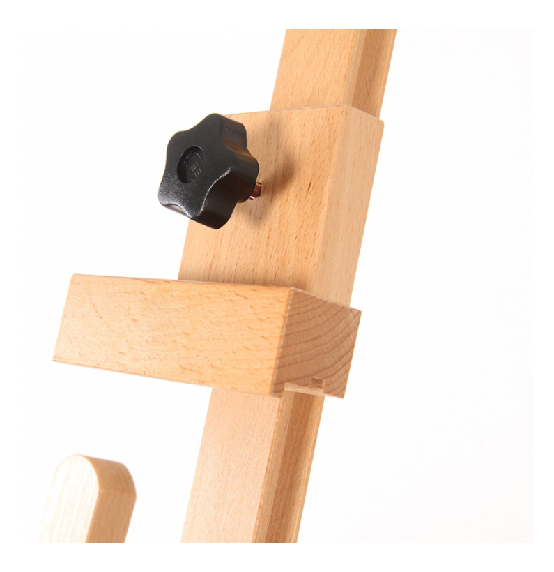 O Cavalete Lira +Art é construído em madeira faia e apresenta um acabamento envernizado. A sua estrutura tem um sistema de engrenagem que facilita a elevação da base da tela.