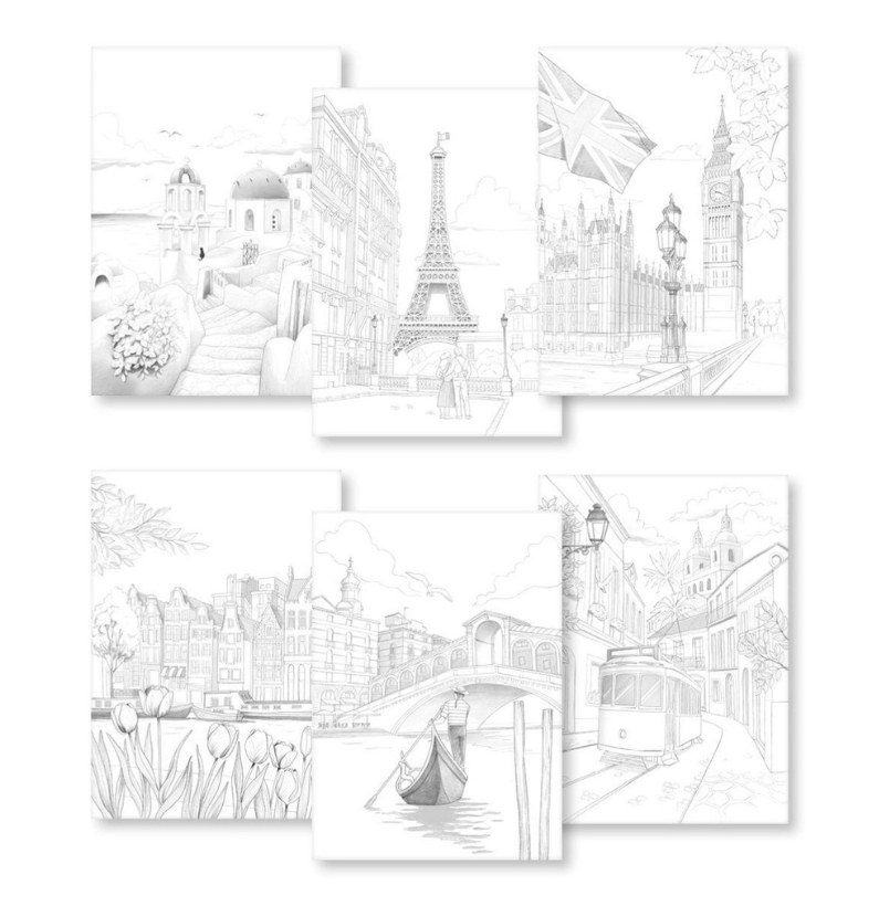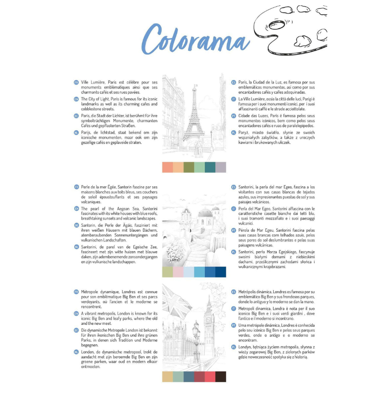 O Clairefontaine Odelia – Livro para Colorir Multitécnica Cidades é um bloco de desenho concebido para todos os amantes da criatividade e da arte, que desejam explorar técnicas variadas enquanto relaxam. Inspirado em cenários urbanos, este bloco combina qualidade premium com um design elegante, oferecendo uma experiência artística completa. Todas as ilustrações, incluindo as da capa, foram criadas pela talentosa ilustradora francesa Emmanuelle Colin, reconhecida pelo seu estilo detalhado e expressivo.