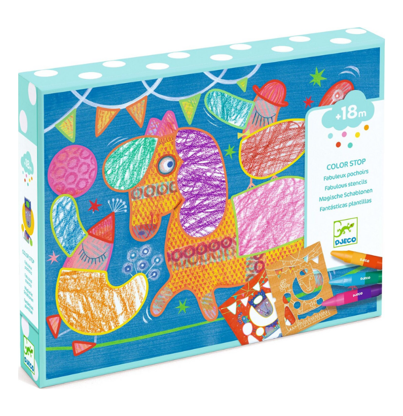 O Color Stop Fabulosos Stencils é o conjunto perfeito para introduzir os pequenos no maravilhoso mundo da arte e da expressão criativa. Projetado especialmente para crianças a partir de 18 meses, ele oferece uma experiência divertida, livre e segura, ideal para as primeiras aventuras com lápis de cera e cores.