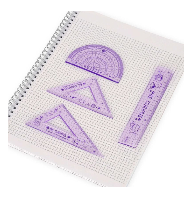 Na escola ou no trabalho, este conjunto flexível é o aliado perfeito para traços precisos e sem complicações. Inclui régua, esquadros e transferidor — tudo guardado num estojo prático. Leve, resistente e cheio de personalidade. Porque até medir pode ser divertido!
