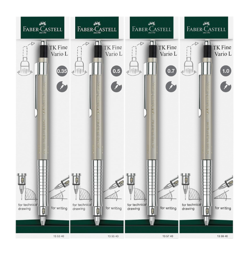 A lapiseira TK-Fine Vario L Champanhe da Faber-Castell combina precisão e versatilidade num design elegante. Disponível em 4 espessuras (0,35 a 1,0 mm), adapta-se a qualquer tipo de traço.