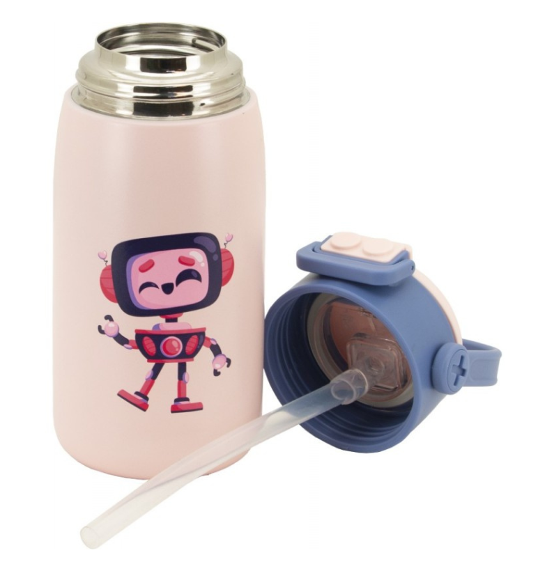 A Garrafa Térmica Robot Rosa 560 ml é a companheira perfeita para acompanhar as crianças na escola, em viagens ou nas atividades do dia a dia. Com um design encantador inspirado num simpático robot rosa, esta garrafa combina funcionalidade, segurança e diversão, tornando a hidratação muito mais apelativa para os mais pequenos.
