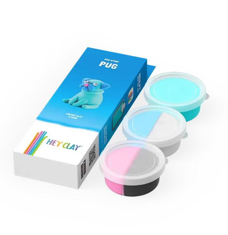 Descubra o Hey Clay Dog Story Pug, um conjunto divertido de argila colorida que seca ao ar, ideal para crianças a partir dos 3 anos. Com 3 latas de argila e uma aplicação interativa, os pequenos podem criar Pugs e outros cães adoráveis, cheios de cor e personalidade.