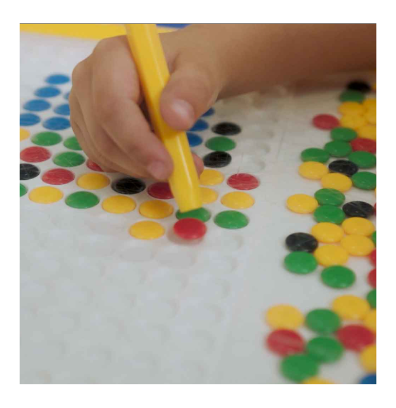 O jogo inclui diversos cartões reutilizáveis com diferentes desafios e níveis de complexidade, permitindo que as crianças evoluam ao seu ritmo. Os pontos numerados e as cores orientam a criança, ajudando-a a compreender sequências, números e padrões visuais de forma intuitiva. É perfeito para brincar sozinho, em família ou em grupo, promovendo momentos de aprendizagem criativa e partilha.