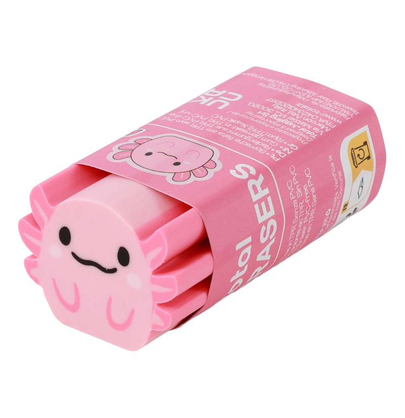 Além da sua utilidade, a borracha Axolutely destaca-se pelo apelo visual e colecionável. O formato de axolote, com cores vibrantes e detalhes encantadores, transforma um simples utensílio de escritório ou escolar num pequeno objeto de diversão e expressão pessoal. Ideal para quem gosta de personalizar o seu material de escrita, esta borracha torna-se um destaque em qualquer estojo ou mesa de estudo.