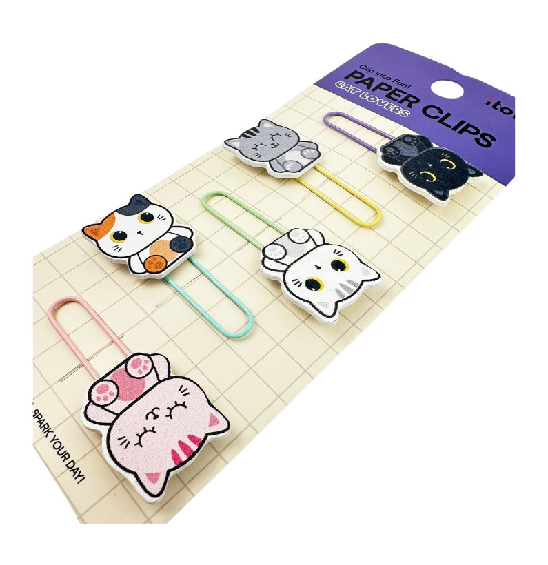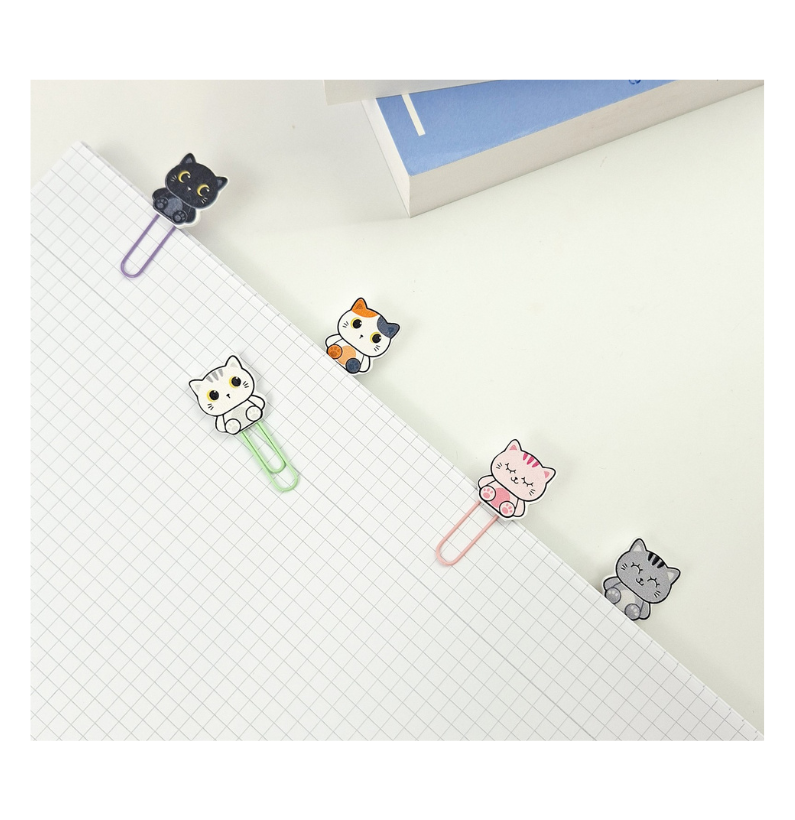 - 5 clipes de papel com figuras de gatos
