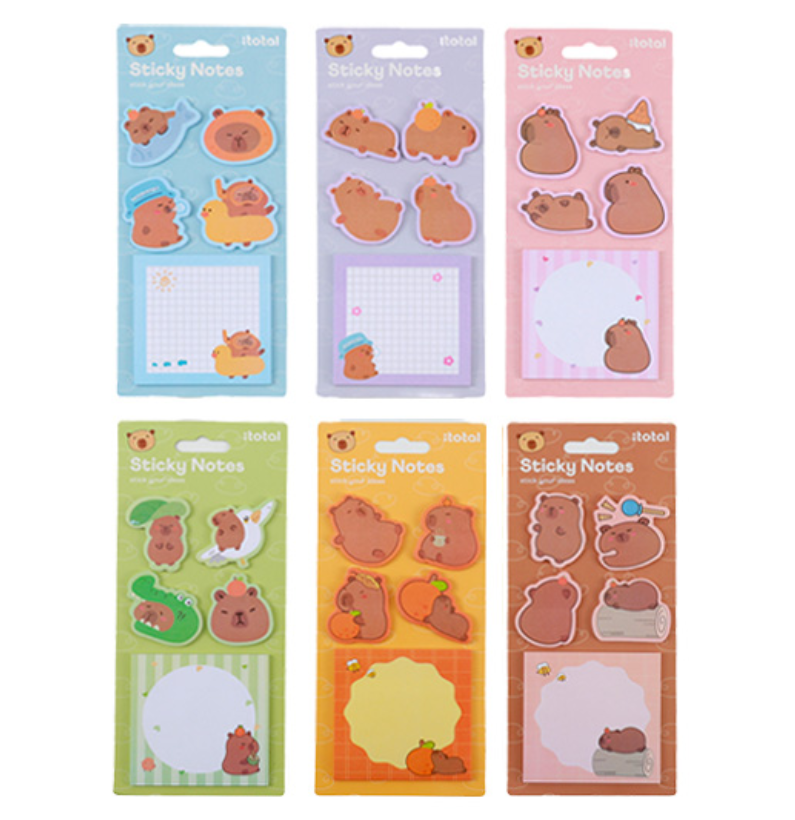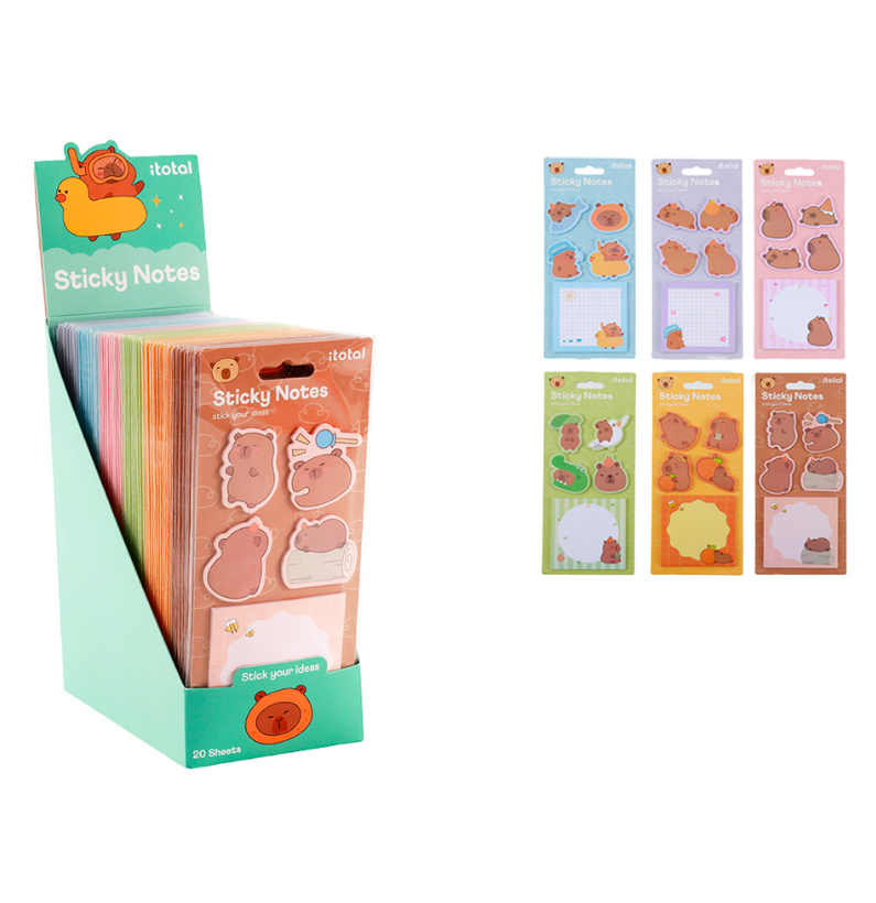 Organiza o teu dia com um toque de criatividade e boa disposição com os iTotal Sticky Notes! Este conjunto encantador traz uma seleção de blocos adesivos inspirados na personagem irresistível Capivara.