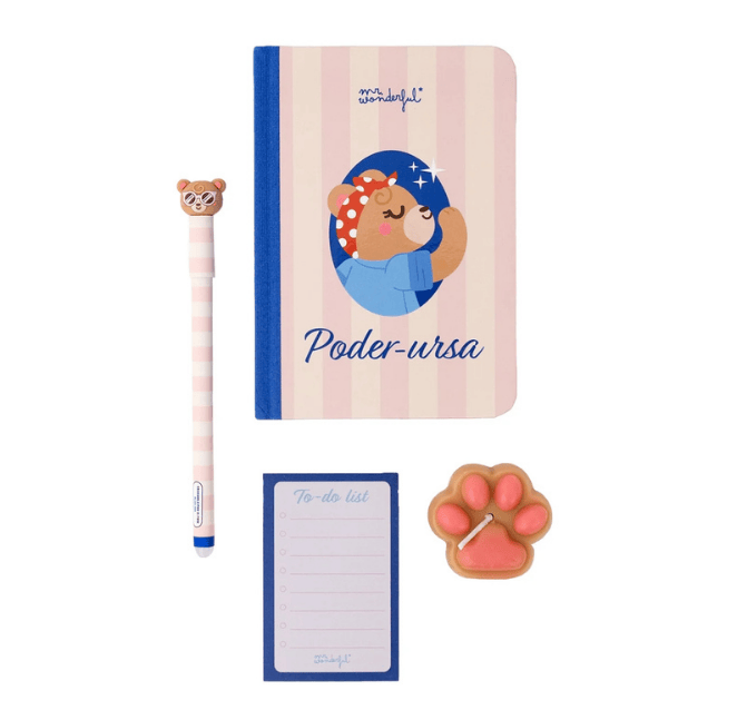 Kit caderno A6 + caneta apagável Bo-Bo + vela + to-do list – Poder-ursa Mr. Wonderful