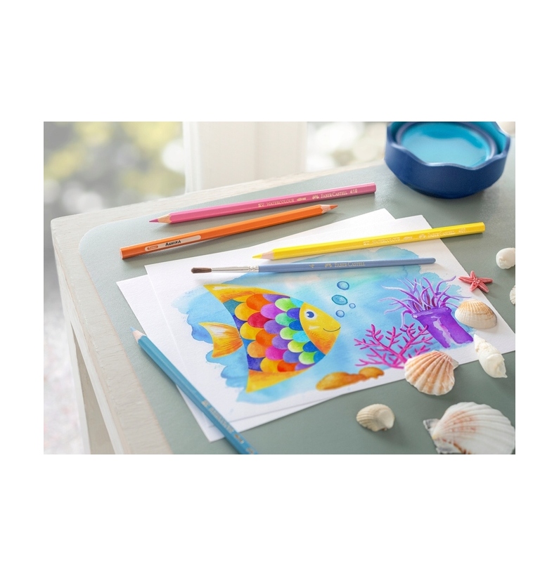 Estes lápis, da Faber-Castell, acrescentam um novo nível à criatividade. As cores brilhantes com uma camada de cor sedosa e suave são todas solúveis em água. Com um toque do pincel húmido, podes virar o lápis para pintar e criar desenhos brilhantes.