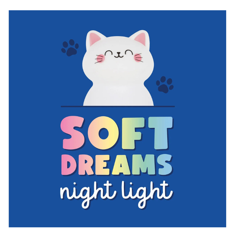 A Luz Noturna Recarregável Soft Dreams Kitty da Legami cria um ambiente calmo e acolhedor com 5 cores suaves, perfeitas para ajudar os mais pequenos a adormecer tranquilamente.