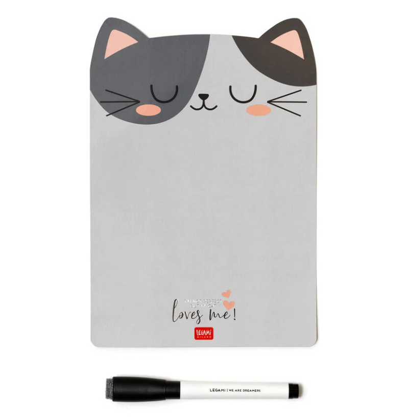 O Quadro Branco Magnético Something to Remember – Kitty da Legami é uma ferramenta prática e divertida para organizar o dia a dia, adicionando um toque de charme a qualquer espaço. Com um adorável tema de gatinho, este quadro magnético transforma simples listas e lembretes em apontamentos encantadores, tornando a rotina mais leve e agradável. Ideal para a cozinha, escritório ou quarto, é perfeito para anotar listas de compras, tarefas, recados e ideias, mantendo tudo visível e à mão.