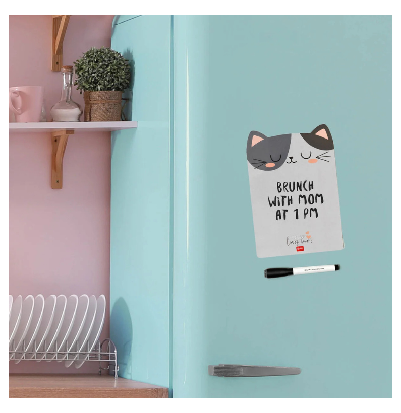 O Quadro Branco Magnético Something to Remember – Kitty da Legami é perfeito para organizar o seu dia com charme! Fixe-o no frigorífico ou em qualquer superfície metálica e anote listas, recados ou ideias de forma prática e divertida.