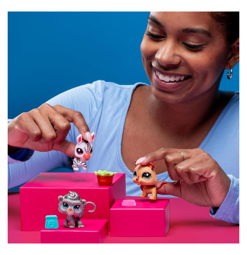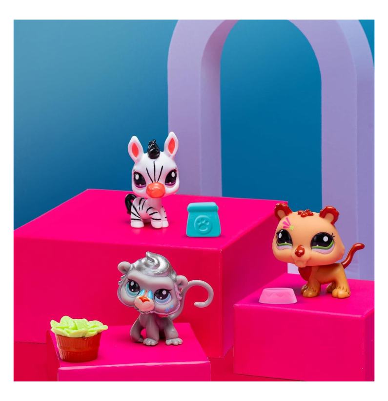 O conjunto inclui três novos amigos cheios de personalidade: o majestoso Leão (#96), a divertida Zebra (#97) e o brincalhão Macaco (#98). Cada pet mede entre 3,8 cm e 5,1 cm e traz o inconfundível movimento de cabeça balançante que dá vida a cada personagem. Com detalhes coloridos e expressões cativantes, estes pets são perfeitos para horas de brincadeira criativa!