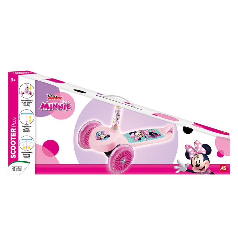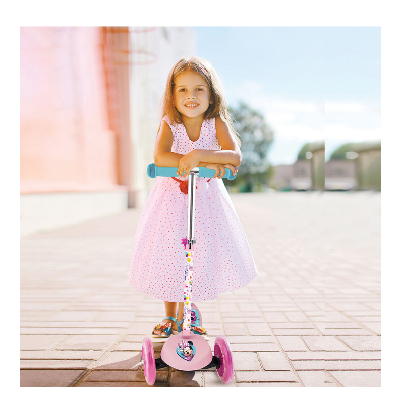 Com o seu visual divertido inspirado na Minnie, esta trotinete não só conquista pelo design como também estimula a atividade física e a diversão ao ar livre, tornando-se uma escolha perfeita para crianças entre os 2 e os 5 anos.