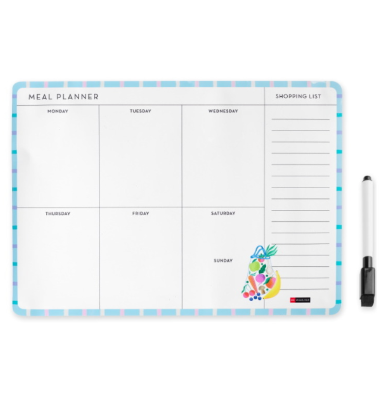 Com verso magnético, acabamento apagável tipo quadro branco e marcador incluído, é perfeito para ter no frigorífico e manter tudo sob controlo.