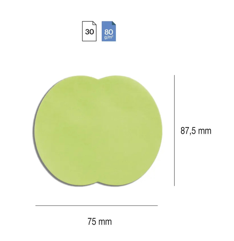 Com 30 folhas adesivas em forma de maçã, papel resistente de 80 g/m² e tamanho prático de 87,5 x 75 mm, é perfeito para notas rápidas, listas ou recados. Colorido e divertido, torna o dia a dia mais alegre e organizado.