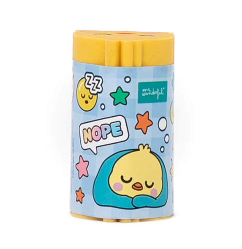 A Mr. Wonderful Borracha Lazy Pintainho é o acessório perfeito para dar um toque de diversão e ternura ao teu estojo. Com a forma de uma das adoradas personagens Lazy, representada deitada de forma descontraída, esta borracha transforma uma tarefa simples do dia a dia num momento mais leve e cheio de personalidade.