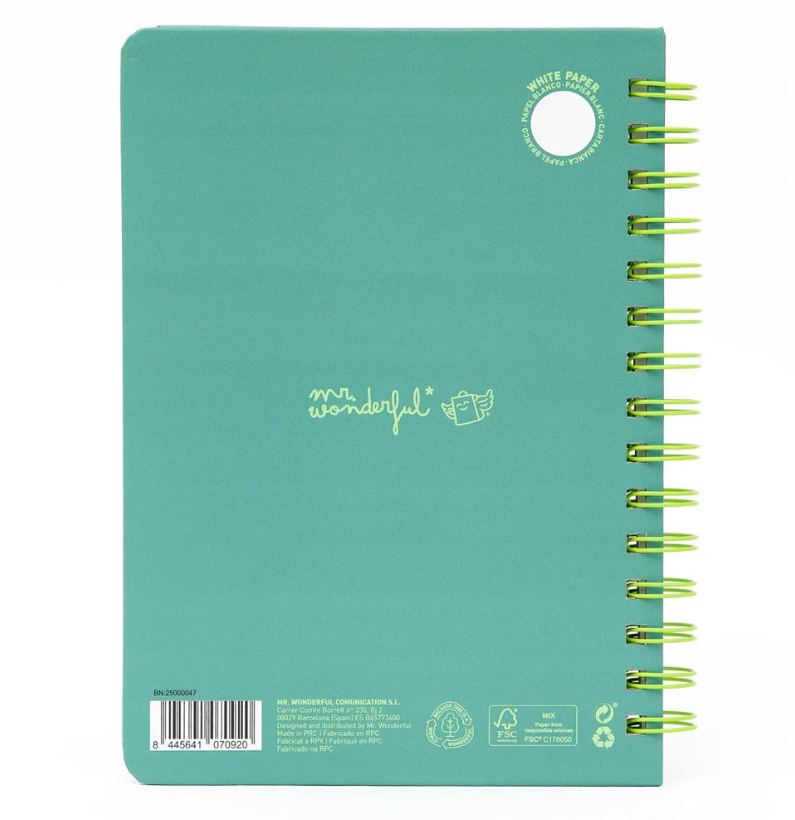 Inclui ainda uma folha de autocolantes e é feito com papel certificado FSC, para cuidares das tuas ideias e do planeta ao mesmo tempo.