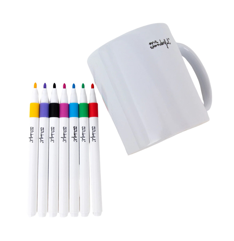 O conjunto inclui uma caneca branca pronta a ganhar vida e 7 marcadores coloridos: laranja, amarelo, vermelho, lilás, azul, preto e verde. Com tantas cores à disposição, as possibilidades são infinitas! Desde mensagens especiais e desenhos divertidos até pequenas declarações de amor, tudo vale para surpreender aquele pai que merece algo mesmo especial.