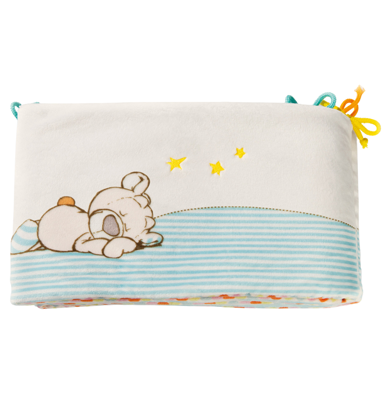 Com dimensões de 21 x 20 cm, o resguardo adapta-se facilmente à maioria dos berços, ajudando a proteger o bebé de pequenos impactos contra as grades e criando uma sensação de aconchego durante o descanso. O delicado motivo do coelho e do urso, personagens da linha My First da Nici, transmite tranquilidade e doçura, estimulando uma atmosfera calma e reconfortante, ideal para o sono do bebé.