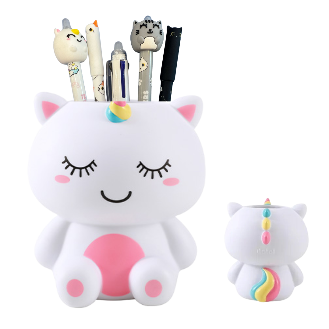 Dá um toque divertido à tua secretária com este unicórnio super fofo. Perfeito para manter canetas e lápis no sítio, sempre com muito estilo!