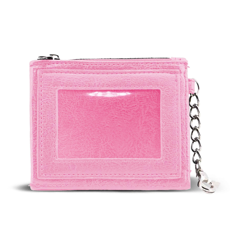 Com compartimento frontal transparente para os teus cartões e fecho de zíper seguro, leva tudo o que precisas sempre contigo. Corrente lateral com chaveiro para prender onde quiseres. Perfeito para fãs da Barbie que adoram organização com charme!
