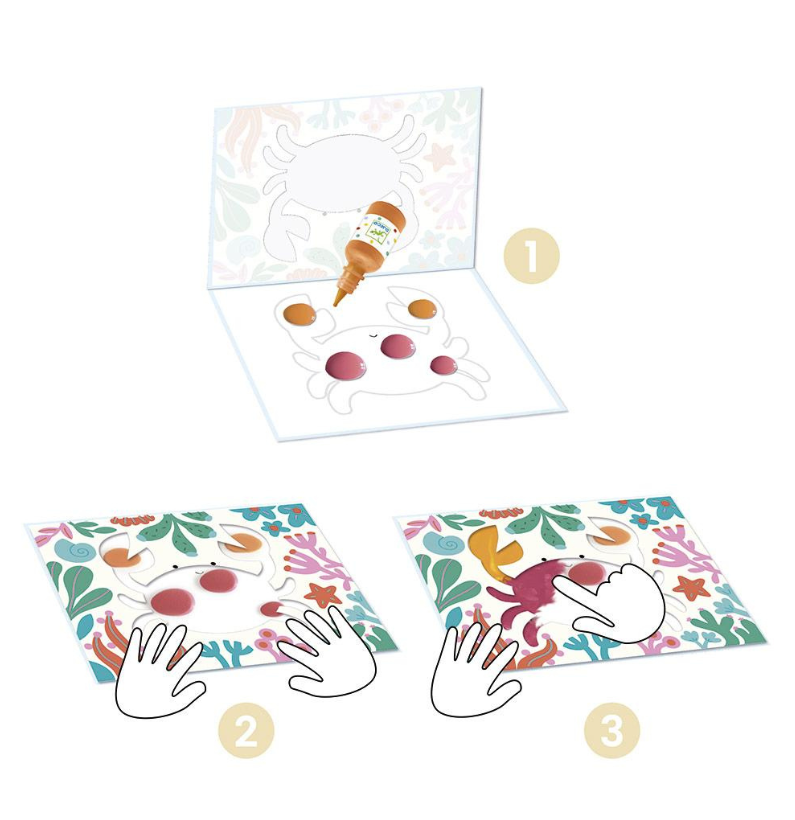 Perfeito para crianças a partir dos 18 meses, este kit permite que os pequenos pintem com as mãos sem se sujar! Basta colocar a tinta na capa plástica e deixar a criatividade fluir.