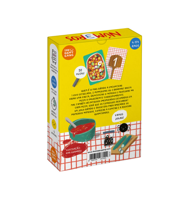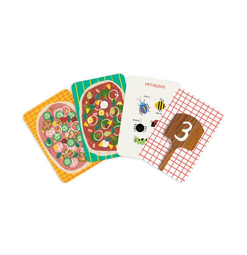 Este jogo de cartas, ilustrado com muito charme por Ana Granado, faz parte da Gama Brain Away, criada para estimular o cérebro através de atividades lúdicas. A ideia é simples: viras uma carta onde aparece um número, e tens de procurar rapidamente o ingrediente correspondente na pizza. Mas atenção, não basta só ver o número — tens de contar e associar a quantidade certa, desenvolvendo a tua atenção, rapidez e capacidade de observação.