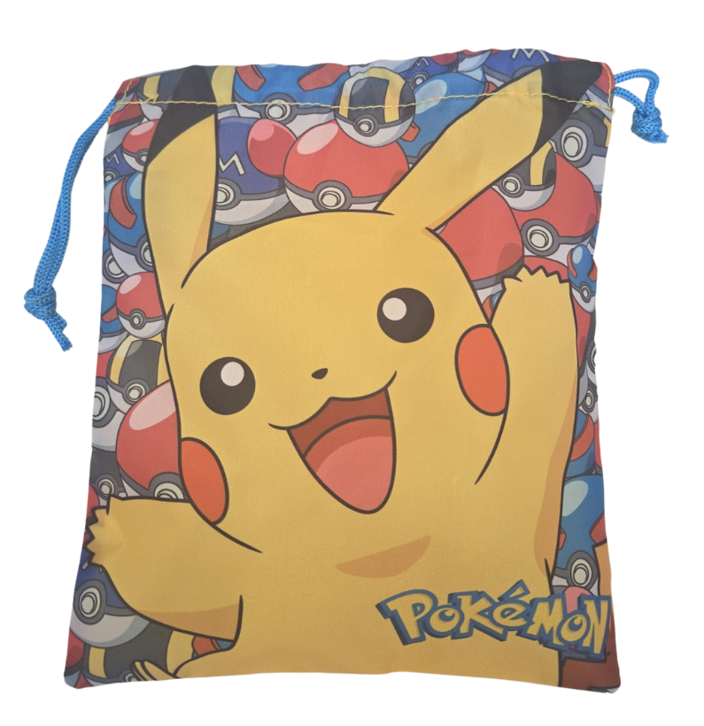 Leva o teu lanche com o Pikachu! Material resistente e tamanho perfeito (25 x 20 cm), este saco é ideal para o recreio ou passeios.