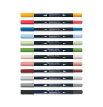 - ponta de pincel macia e flexível para áreas e larguras de linhas variáveis e ponta de ponta fina revestida de metal (0,6) para contornos e detalhes