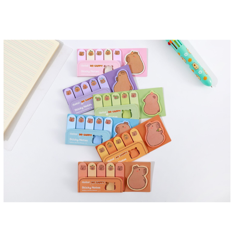Os Sticky Notes Capivara So Cappy da iTotal trazem cor, diversão e organização para o seu dia a dia. Com 6 cores vibrantes e design divertido de capivara, são perfeitas para anotar tarefas, planejar ou marcar lembretes em escola, escritório ou casa.