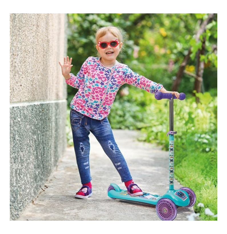 Desenhada a pensar nas crianças que estão a dar os primeiros passos no mundo das rodas, a trotinete tem 3 rodas que garantem maior equilíbrio e estabilidade, ideal para iniciantes. A base é larga e possui uma superfície antiderrapante, o que ajuda a manter os pés bem apoiados durante a utilização, reduzindo o risco de escorregões.