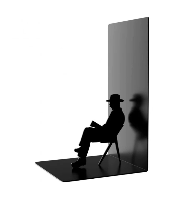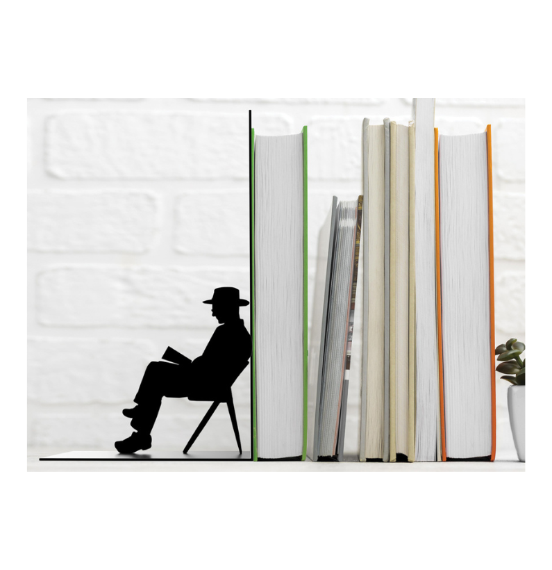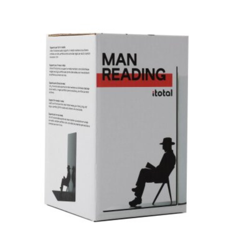 Fabricado em metal resistente, com 0,12 cm de espessura, este suporte foi pensado para oferecer estabilidade e durabilidade no apoio aos seus livros, mesmo os mais pesados. A sua forma apresenta a silhueta de um homem sentado a ler, transmitindo uma mensagem clara: ler é um momento de tranquilidade, concentração e prazer.