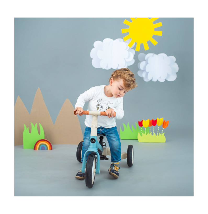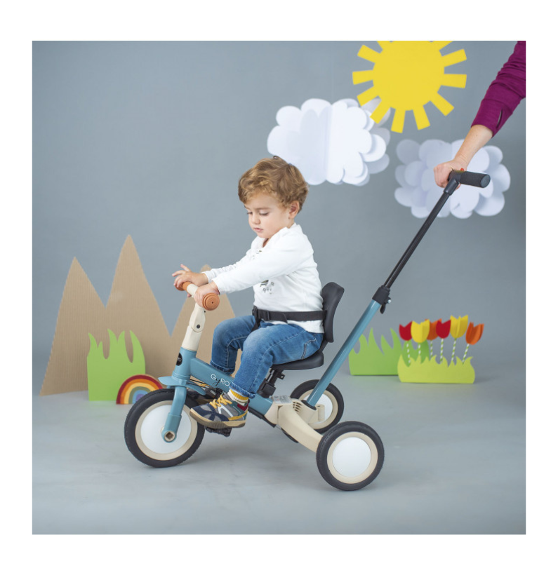 O Triciclo Multifuncional Gyro Azul é a escolha ideal para pais que procuram um produto duradouro, adaptável e seguro. Com um design inteligente e funcional, este triciclo pode ser utilizado de cinco formas diferentes, ajustando-se facilmente à idade, altura e capacidades da criança — desde os primeiros meses de descoberta até aos primeiros passos sobre duas rodas.