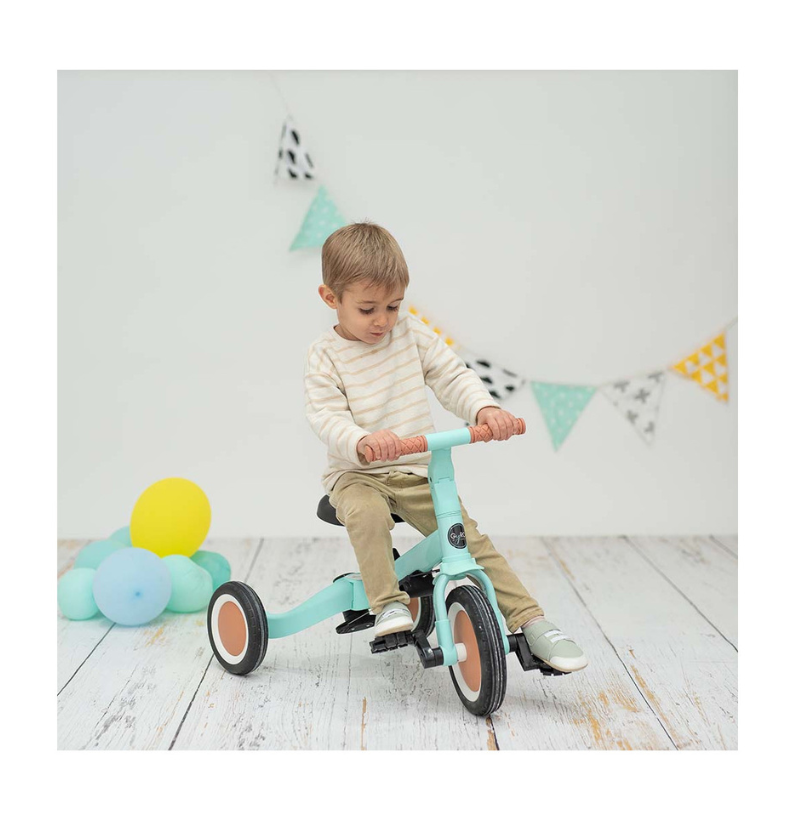 Com o Triciclo Multifuncional Gyro Menta, cada fase do crescimento é uma nova aventura. Um só produto, múltiplas possibilidades — perfeito para acompanhar os pequenos aventureiros nos seus primeiros grandes passos sobre rodas.