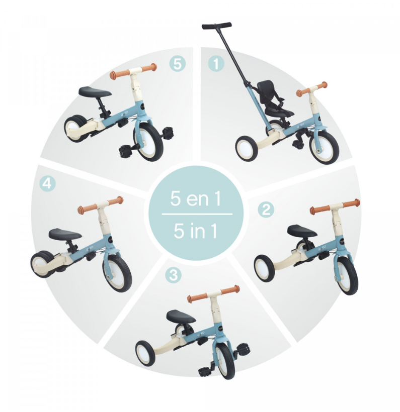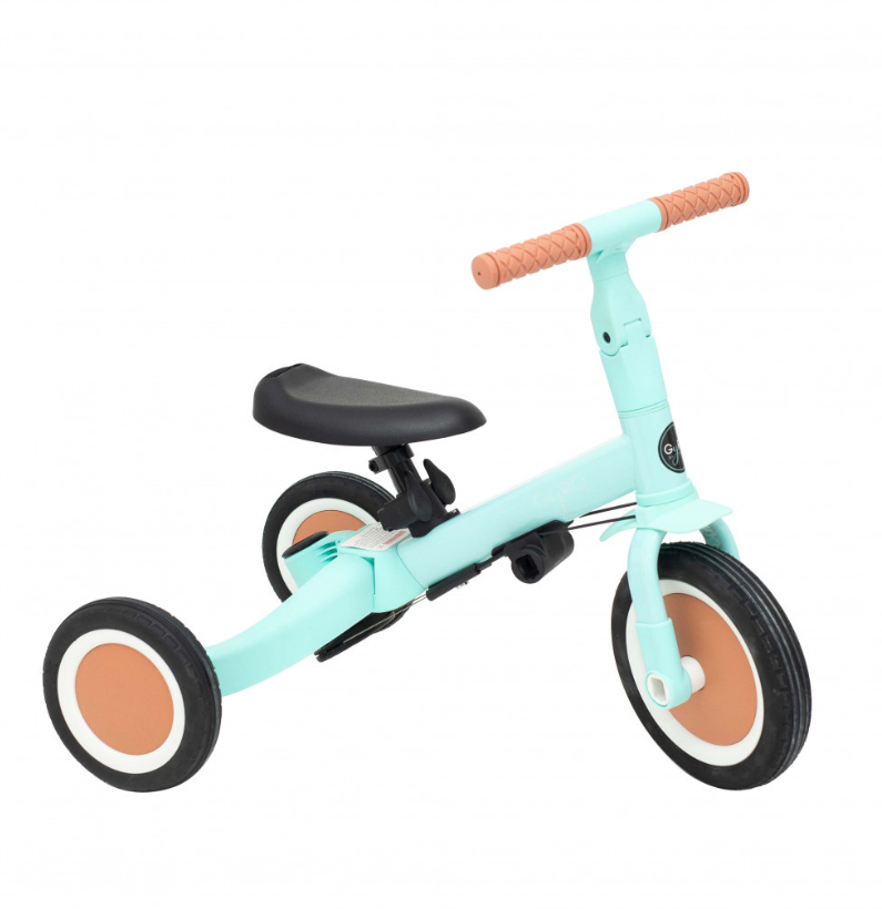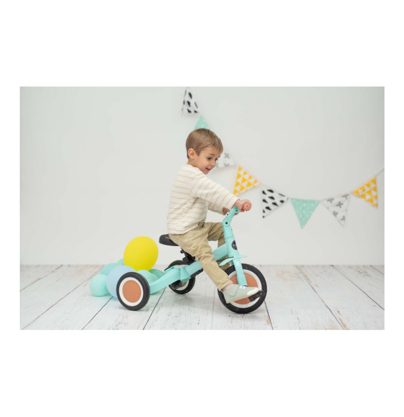 O Triciclo Multifuncional Gyro Menta é a escolha ideal para pais que procuram um produto duradouro, adaptável e seguro. Com um design inteligente e funcional, este triciclo pode ser utilizado de cinco formas diferentes, ajustando-se facilmente à idade, altura e capacidades da criança — desde os primeiros meses de descoberta até aos primeiros passos sobre duas rodas.