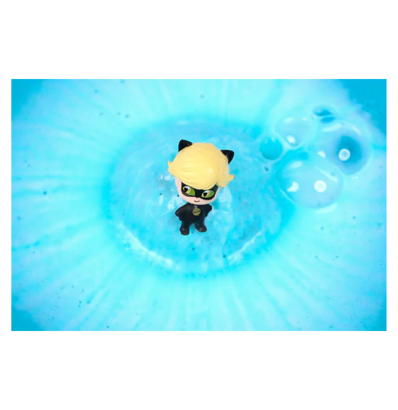 A sua utilização é simples e envolvente: basta colocar a bomba na água da banheira e observar como começa a borbulhar, libertando cores vibrantes que transformam a água. À medida que se dissolve, revela uma surpresa especial — um dos 6 bonecos Miraculous colecionáveis. Este elemento surpresa torna cada utilização ainda mais emocionante e incentiva a coleção, prolongando a diversão para além do banho.
