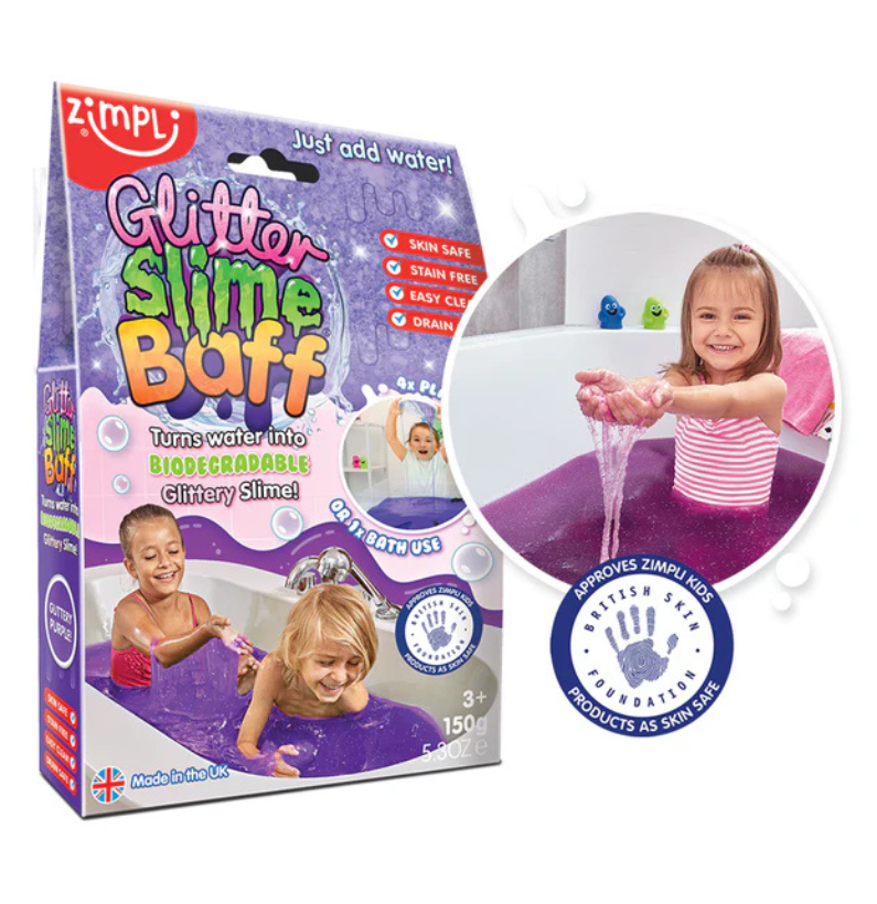 Transforme o banho numa experiência mágica e divertida com o Zimpli Glitter Slime Baff Roxo! Basta adicionar o pó para criar um slime brilhante, pegajoso e sensorial em segundos. Depois, é só diluir com água e tudo volta ao normal. Seguro para a pele, não mancha e fácil de limpar — diversão sem limites na hora do banho!