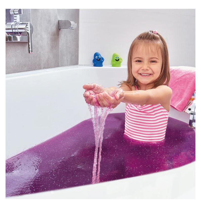 A sua utilização é simples e segura: basta adicionar o pó à água do banho e ver a transformação acontecer em segundos. A água converte-se num slime roxo com brilho, criando uma textura escorregadia e envolvente que estimula os sentidos e a imaginação das crianças. É ideal para tornar o banho mais apelativo, especialmente para os mais pequenos que nem sempre apreciam este momento do dia.